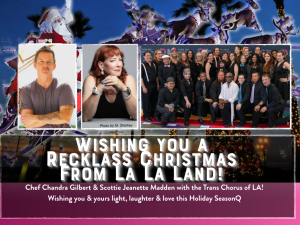 … “How do you follow that?” I stammered, as I tried to say a speech that was in the making since I first set out on the journey. I looked out at the crowd — the six people from own neighborhood who came to show their support, the fans of the TCLA who now are fans of my book, the family that has supported me every step of the way, and said “I had high hopes for this event since Chandra first offered to cook my Christmas menu, but when I saw the Video & National Spot the Chorus did for Pantene, set to their rendition of “I’ll be home for Christmas” my idea for the evening changed from receiving to giving. I realized that that was really the true spirit of Recklass. Serving love to those you love. — tonight was not about celebrating the finale of The Recklass Coast2Coast Tour, but rather celebrating being “Home” for Christmas – where our hearts are – with our chosen family, which in my case, thru Grace, is both my blood family and Queer siblings.”