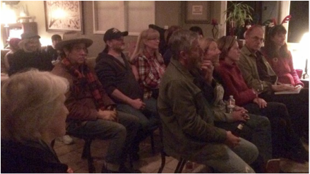 It was SRO in the beautiful living room- made-auditorium, with the love and cheer of Jack & Ruthie Hayback. I am so grateful for these amazing friends – Jack is a professional audio engineer, and producer who knows how to turn an event into a great show, and Ruthie is the world class hostess, gracious and truly caring. That they opened their hearts and their home for Mylove and me, in their jam-packed work & holiday schedule is humbling to say the least. But they made this a truly memorable experience for everyone, in a seemingly effortless way – (but don’t worry Marcy and I weren’t fooled – we know the superhuman effort required to be calm in the chaos – kindred spirits!)