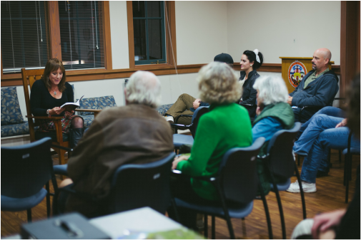 My beautiful niece Hana helped me avoid a huge fashion catastrophe and then we set up the room at the library, as we awaited the guest to appear. I greeted some of the early arrivals when my mind was suddenly blown… my dear friend Patricia had just won the “traveled the farthest contest” – ALBUQUERQUE NEW MEXICO? I couldn’t believe my eyes! A huge hug from an amazing woman that I hadn’t seen in twenty years! What a rockstar! But I had to calm down and get my head together – so much to say to everyone, and so much on the line…