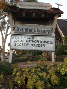 This was truly a family affair – Mylove had to sit this one out, so, my sister Kimm and my lovely niece Hana picked up the slack. I was very well taken care of! And family runs deep in the city of my birth – Bud & Mary Ann, Kimm’s parents-in-law, graciously hooked me up with Polly Cipparrone, the librarian for Del Mar, which set the stage for an amazing event.
